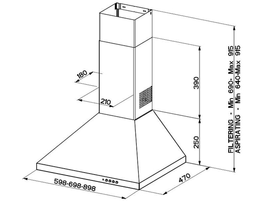 L'essentiel Hotte décorative murale Largeur 60 cm Débit d'air max. 400 m3/h Niveau sonore 64 dB Eclairage LED 4 Watts