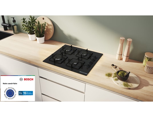 BOSCH – Plaque gaz POP6B6K30, Série 2, Thermocouple, Verre trempé