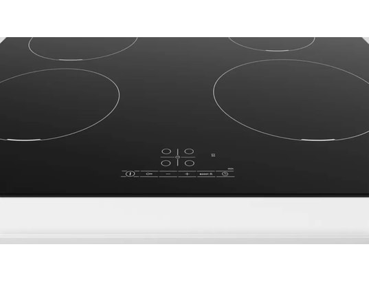 La table de cuisson à induction Bosch PUE611BB5E comporte 4 foyers avec la technologie TouchSelect, qui facilite la sélection de la zone de cuisson et des 17 niveaux de puissance disponibles.