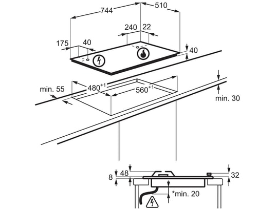 La table de cuisson gaz ELECTROLUX est équipée avec des injecteurs gaz de ville et dispose également du nécessaire pour le branchement aux gaz butane/propane.