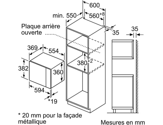 L'essentiel Micro-ondes combiné encastrable Volume 25 litres 8 programmes automatiques - cookControl8 5 Puissances micro-ondes Puissance max. micro-ondes 900 Watts
