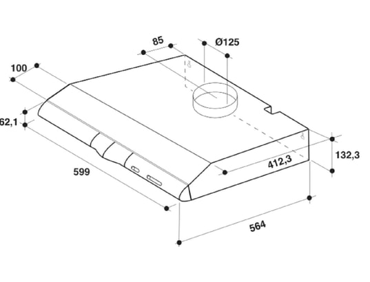 L'essentiel Hotte à visière Largeur 60 cm Débit d’air maximum 270 m3/h Niveau sonore 71 dB Eclairage LED